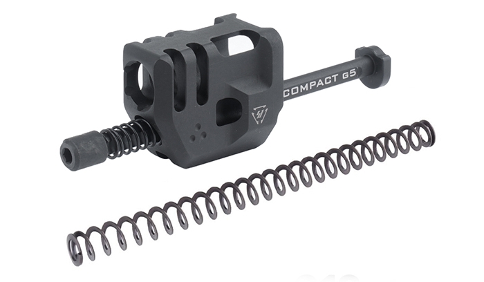 Kompensator przeznaczony do pistoletu Glock 19 Gen. 5, wyprodukowany przez Strike Industries. Nie utrudnia korzystania z kabur retencyjnych, ani nie zwiększa ryzyka zahaczenia się o ubrania. Montaż niewymagający ani gwintu na zewnątrz lufy, ani ingerencji rusznikarskiej. W zestawie dołączone jest urządzenie powrotne kompatybilne z pistoletami pełnego wymiaru Glock Gen .5. Cechy: Brak konieczności nagwintowania lufy Wpisany w kształt zamka profil Zaokrąglone krawędzie Precyzyjnie frezowany metodą CNC Nie ingeruje stale w konstrukcję pistoletu Kompatybilny z pistoletami Glock 19 Gen5 Kompatybilny z kaburami o otwartym dnie Możliwe stosowanie z nagwintowanymi lufami
