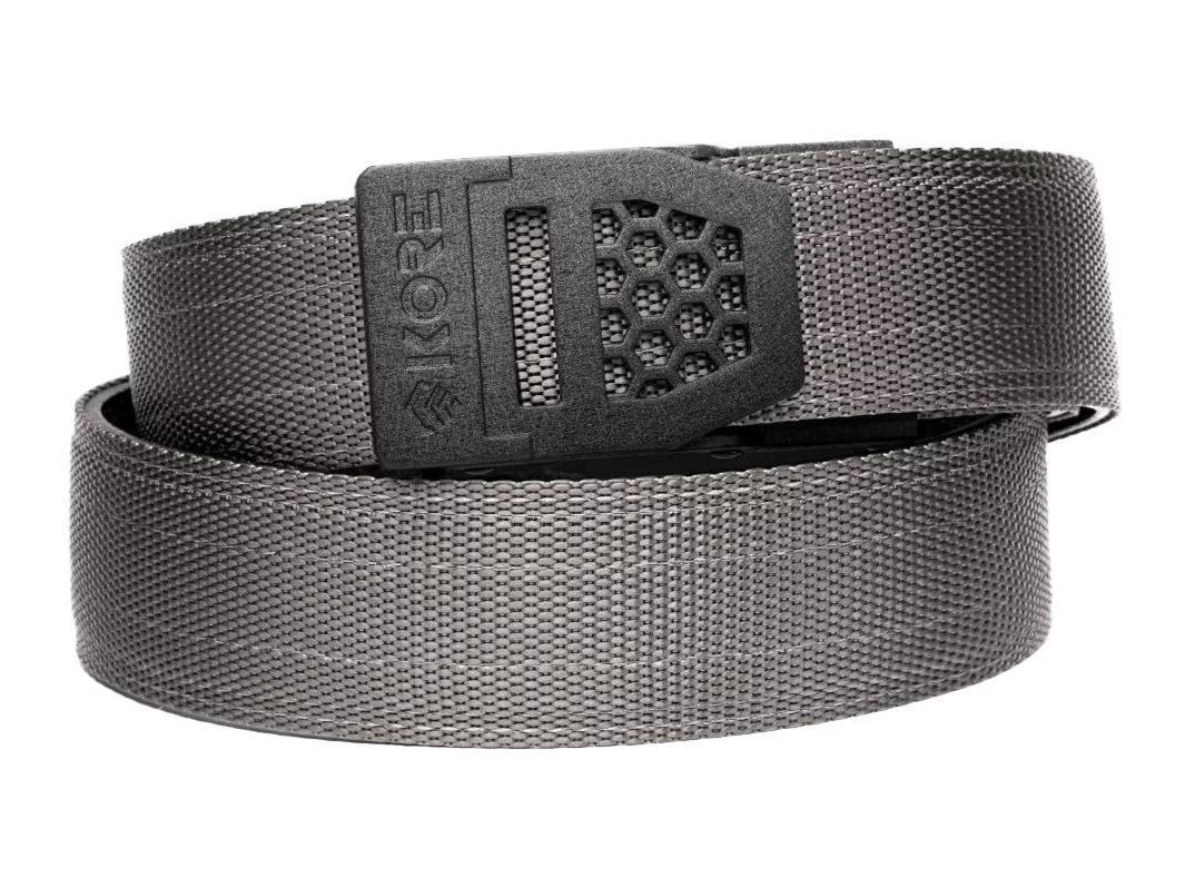 KORE Essentials X6 z tworzywa szary to wygodny i niezwykle solidny pas do codziennego noszenia broni, który, w odróżnieniu od typowych pasów taktycznych nie przyciąga uwagi i doskonale pasuje do codziennego stroju.